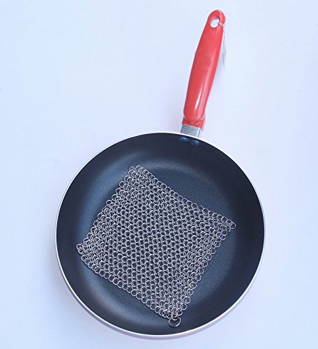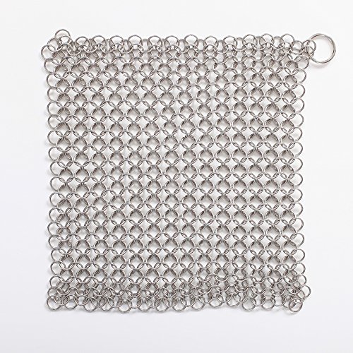 Yeesn Cast Iron Cleaner 8" x 6" Square Stainless Steel Chain Mail Scrubber, Pan & Grill Scrubber (8 x 6 square)