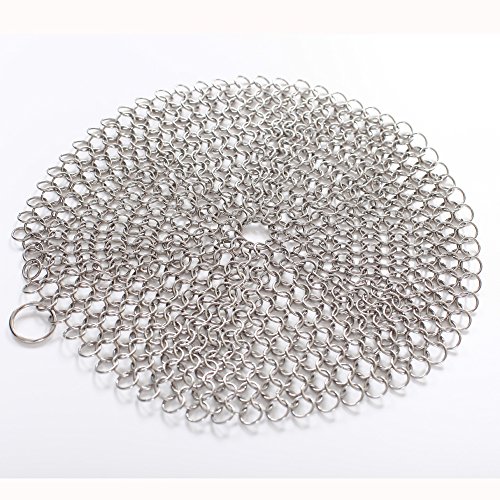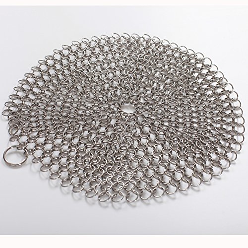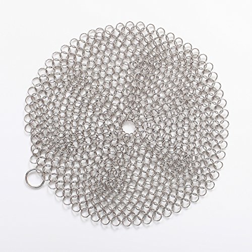 Yeesn Cast Iron Cleaner 8" x 8" Round 316L Stainless Steel Chain Mail Scrubber , Pan & Grill Scrubber