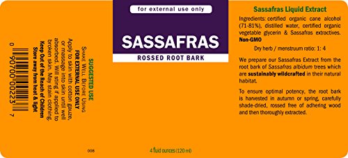 -. Binding : Health and Beauty -. Brand : Herb Pharm -. Label : Herb Pharm -. Manufacturer : Herb Pharm -. Model : DSASS01_parent -. MPN : DSASS01 -. PartNumber : DSASS01 -. ProductGroup : Health and Beauty -. ProductTypeName : HEALTH_PERSONAL_CARE -. Publisher : Herb Pharm -. Studio : Herb Pharm -. Title : Herb Pharm Sassafras Root Bark Extract - 1 Ounce