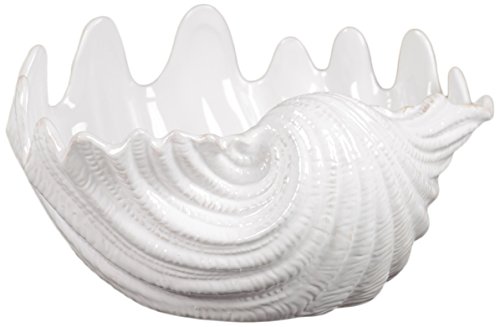 Benzara Beautiful Bowl Shape Ceramic Seashell Figurine with Curve Pattern, White