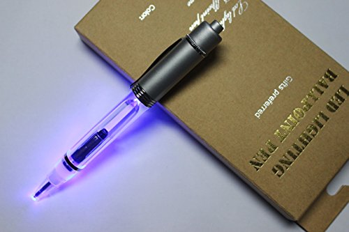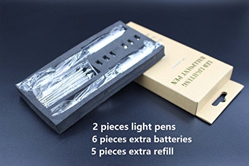 -. Feature : Low lighting in clubs and bars can be a burden on servers and customers alike.Can be writting and read in darkness. / The pen used 3 pieces AG13 (or LR44) batteries and 1 piece LED light inside. / Made in Metal and Acrylic material.Black ink refill and Write smoothly. / This pen features a metal clip for aprons, pockets, tip trays and more. / 2 pieces pens and 2 pieces Velvet bags in one Gift box.Best gift items for Office and School.