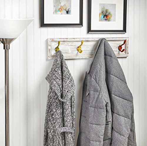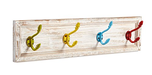 - PRACTICAL, COLORFUL ACCENT. Green, yellow, blue and red hooks are situated on a neutral, antiqued mounting board that can seamlessly fit into any decor. In addition to providing convenient places to hang up any number of items, this accent adds a splash of color to any dull space.