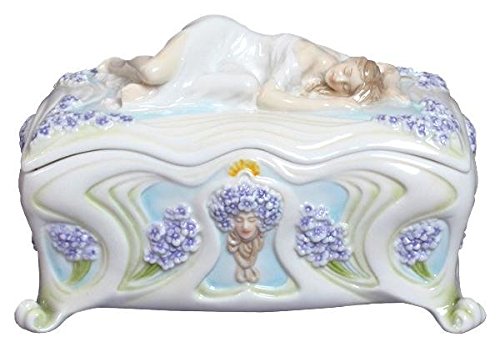 6.25 Inch Slumbering Maiden on Porcelain Trinket Box Violet Motif
