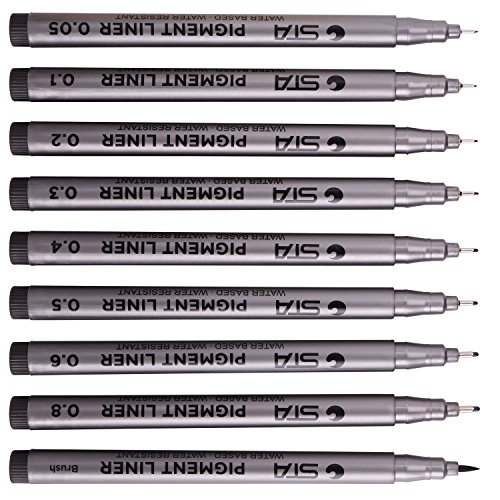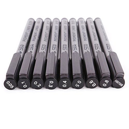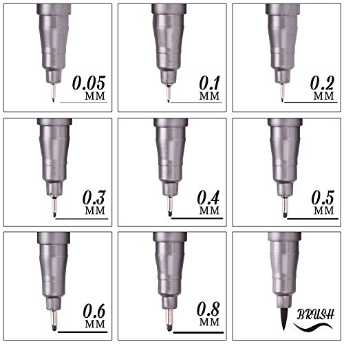 -. Feature : SET OF 9: Extra fine tip Multiliner pens come in nib sizes 0.05mm,0.1mm,0.2mm,0.3mm,0.4mm,0.5mm,0.6mm,0.8mm and brush tip / ARCHIVAL INK: Richly pigmented acid free lightfast permanent water proof,long lasting and don't smear, fade, bleed or skip / QUICK DRYING: Smear resistant water resistant fade resistant non bleeding ink. Ideal for Architecture,Anime,ultra-fine liner,writing,enginering,Bible Study,detail space / CONVENIENT STORAGE: Pens comes with a collection package, individual slots to hold each pen, so you can always keep them neatly organized and ready for use. Each pen comes with a coded cap / RISK FREE PURCHASE: 100% LIFETIME SATISFACTION GUARANTEE. We're so confident that you'll be delighted with our Pandafly Fineliner Micro-Pens that if you're not satisfied with them at anytime, we'll provide a full refund