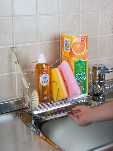 The sponge stand is designed so that the sponge can be placed diagonally.