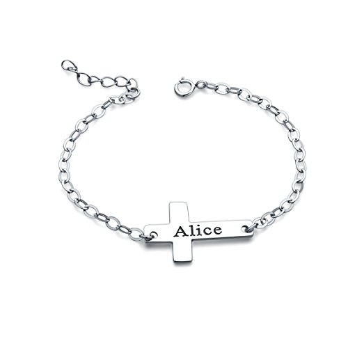 -. Title : Personalized Name Sideways Cross Bracelet Gold Sterling Silver Custom Initial Ankle Bracelet Women Gifts