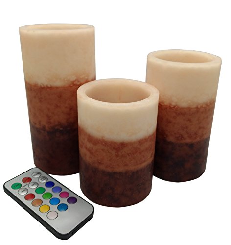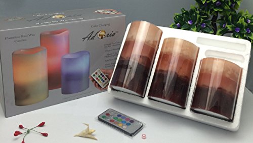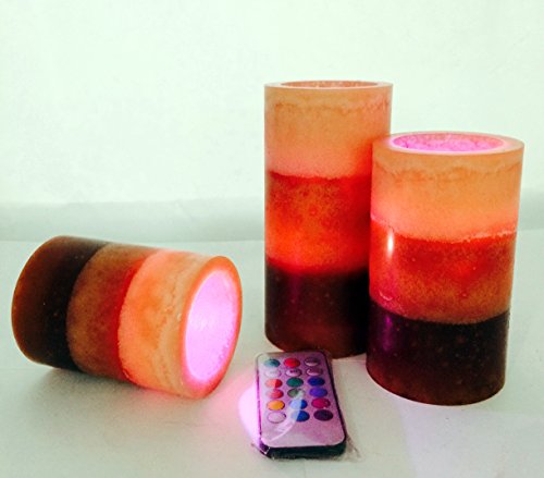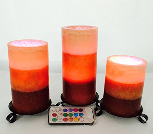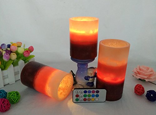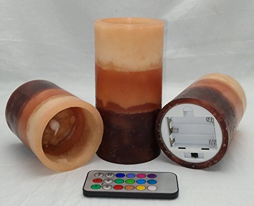 --MULTI-function REMOTE Control(Remote will works from up to 20 feet away) gives you the option to control the FLICKER, set a 4-or 8-hrs timer,Auto-Circle 24Hour timer, Swith 12- Glowing light colors to be chosen from! Also set them to rotate through the color changing automatically! The flame sits deep inside the wax Candle to give you a REALISTIC Candles without the smoke or messy dripping wax!
