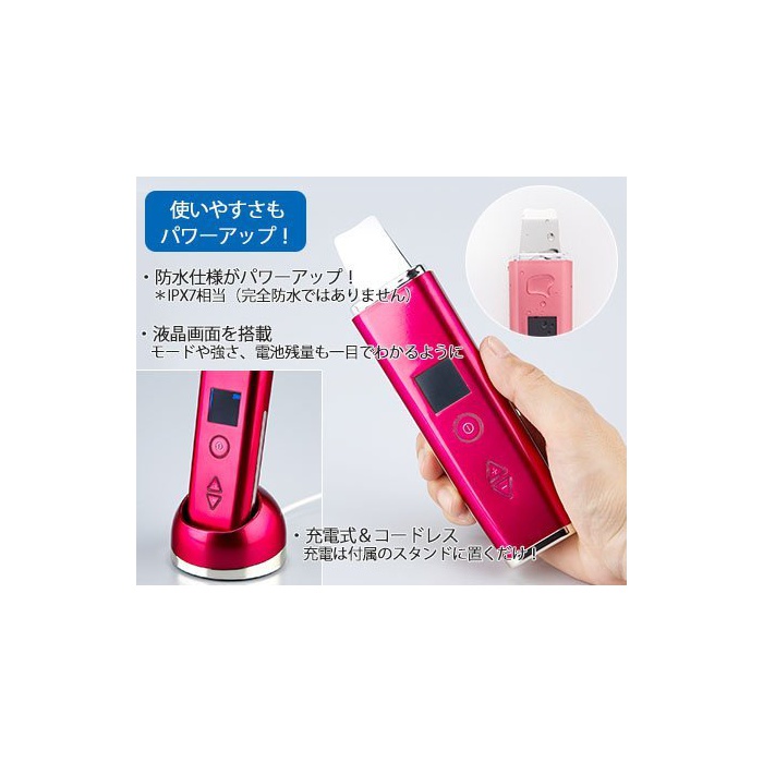 진화한 사용하기 쉬움 방수 사양(IPX7상당 *)가 파워 업! (*완전 방수 가(이) 아닙니다) 충전식&무선 (이므로)그래서 욕실이나 샤워,좋아하는 장소에서 쓸만합니다.충전도 부속 스탠드로 두는 것만(만큼)의 손쉬움!액정 화면을 탑재 한 것을에,모드나 힘,전지잔량도 한 눈에 아는 바와 같이(하도록).보기 쉬움과 사용하기 쉬움으로도 (엄선)고집습니다.게다가(더구나),기쁜 일본제!캡과 바닥에 샴페인 골드를 배치한 고급감이 있는 컬러링.기능성과 디자인성을 겸비한 모델입니다. 【세트 내용】 본체,충전대,충전 어댑터,취급 설명서,미용액(500ml)