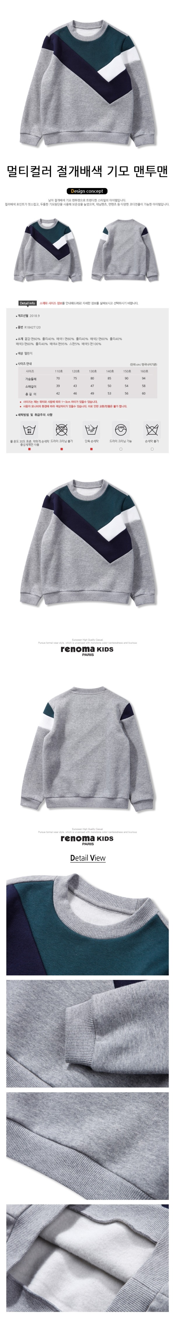 [레노마키즈]남아멀티컬러 절개배색 기모 맨투맨(R1842T122_37)