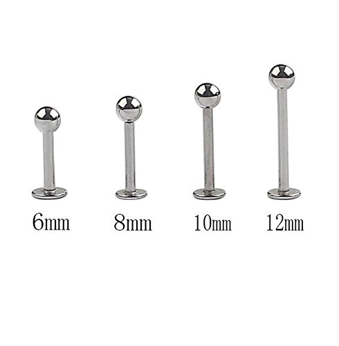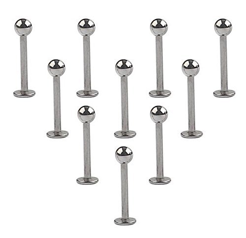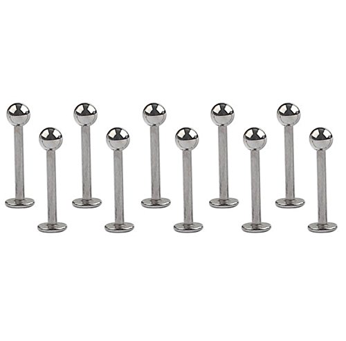 CrazyPiercing 10PCS 16G Stainless Steel 3mm Ball Labret Monroe Lip Ring/ Tragus/ Helix Earring Stud Barbell Body Piercing Jewelry (6mm)