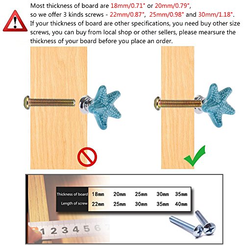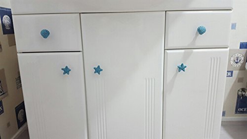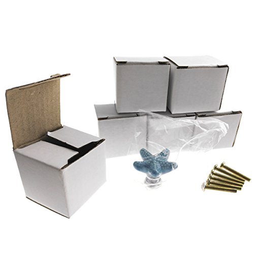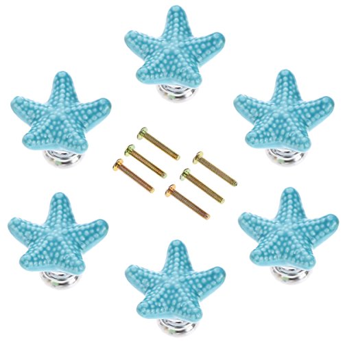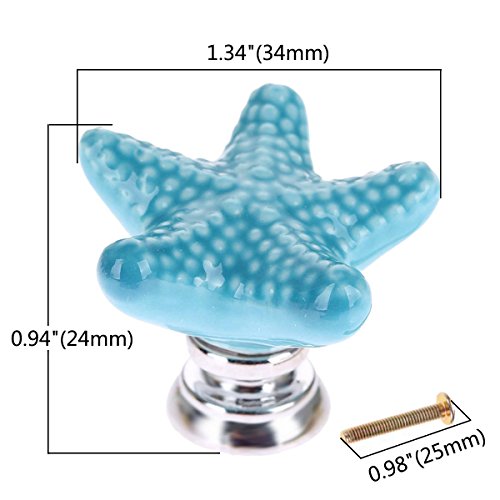 Studio : Corasays Publisher : Corasays Binding : Kitchen Product Description Specifications: - Material: Ceramic and metal - Dimension:1.34x1.34x0.94 Inch (34x34x24mm) - Color: Blue - Knob weight includes the package: 175g Package Included: 6 pieces blue starfish shape knobs 6 pieces 25mm screws