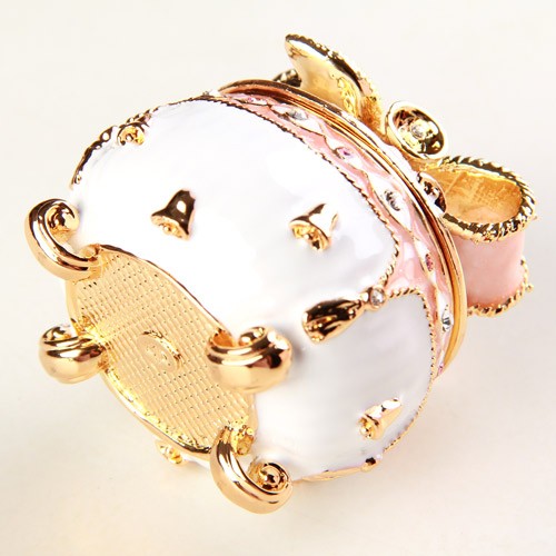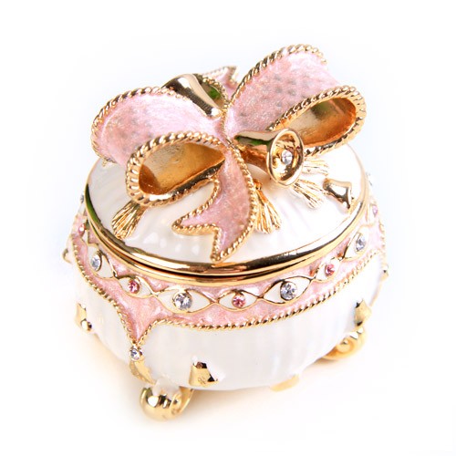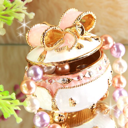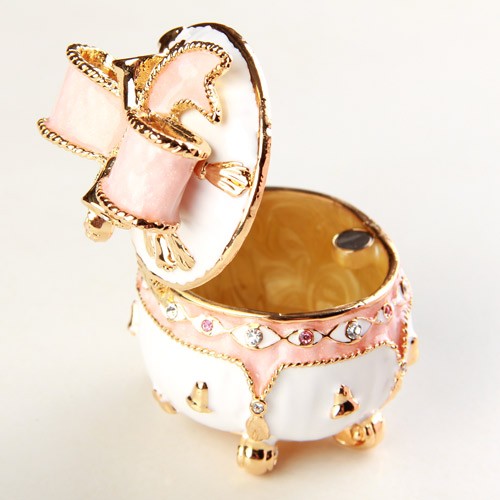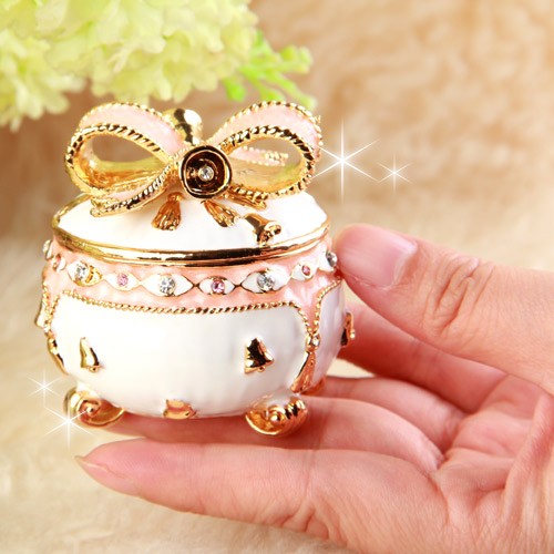 | ジュエリーボックスと言えば、指輪やピアス、ネックレスなどのアクセサリーを入れる引き出し型のケースを思い浮かべる方が多いかもしれません。 ピィアースのジュエリーボックスは、動物や花などをモチーフに作られ、合金製でずっしりとした重さがあります。また高品質のクリスタルガラスを贅沢に使用。まるでジュエリーボックスそのものが宝石のような、高級感溢れる仕上がりです。 小物入れとしても使えるように開閉口には磁石が取り付けてあり、アクセサリーなどなくしやすいアイテムの収納ができます。キラキラと美しく輝く宝石箱は、そのまま飾って楽しめるインテリア雑貨として多くの方に愛されています。 国内トップクラスのジュエリーボックスメーカーであるピィアースは、2004年ごろから本格的に宝石箱の製造を始め、現在のジュエリーボックスはなんと300種類以上。大規模展示会でもご好評いただいており、全国有名百貨店でも販売されています。 自社工場でひとつひとつ丁寧に手作りし、原型作成、研磨、加工、着色、小さなクリスタルガラスの取り付けなども全て手作業で行われるこだわりのハンドメイド品。完成後は厳しい検品の後、丁寧に梱包作業をしお客様にお届けしております。 ピィアース商品は、全国有名百貨店および全国有名宝石店チェーンにてお取り扱いいただいている高品質商品です。 ★自分へのご褒美に…コレクションして並べて飾ると、さらにかわいらしさUP! ★恋人へのプレゼント…中にアクセサリーを入れて、サプライズな贈り物として ★家族への感謝ギフト…お母さんや姉妹へ、日頃のありがとうの気持ちを込めて ★誕生日プレゼント…お友達の喜ぶ顔が見たいから、いつもと違うキラキラギフトを ★小さな女の子へ…まるでお姫様が使っているようなキラキラ宝石箱は女の子の憧れ! |
