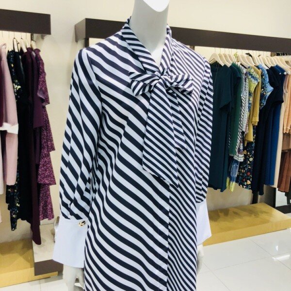 세련된 패턴의 롱 기장의 블라우스 입니다 옆트임의 포인트로 원피스또는 블라우스로 두가지 스타일을 내실수 있습니다