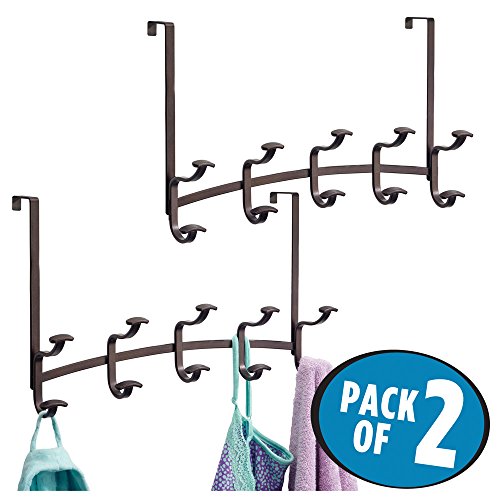 mDesign Over-the-Door 10-Hook Rack for Coats, Hats, Robes, Leashes for Closet - Pack of 2, Bronze