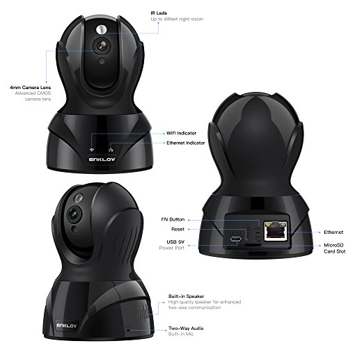 -. Title : 1080P Wireless WiFi IP Security Camera,ENKLOV Home Video Surveillance Camera with Night Vision,Pan/Tilt,Two-way Audio,Motion Detection
