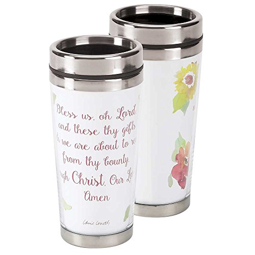 Bless Us Oh Lord Poem Water Color Flowers 16 Oz. Stainless Steel Insulated Travel Mug with Lid