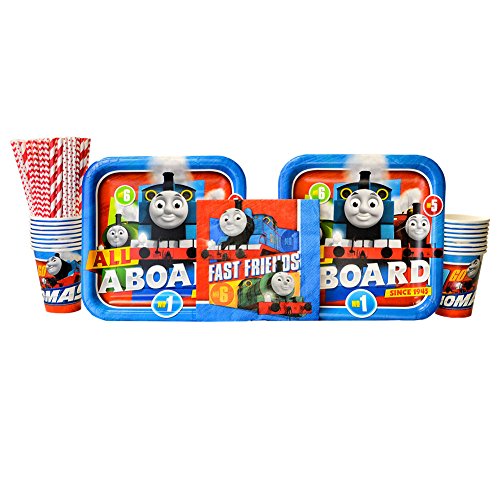 -. Title : Thomas the Tank Engine Party Supplies Pack for 16 Guests: Straws, Dinner Plates, Luncheon Napkins, and Cups