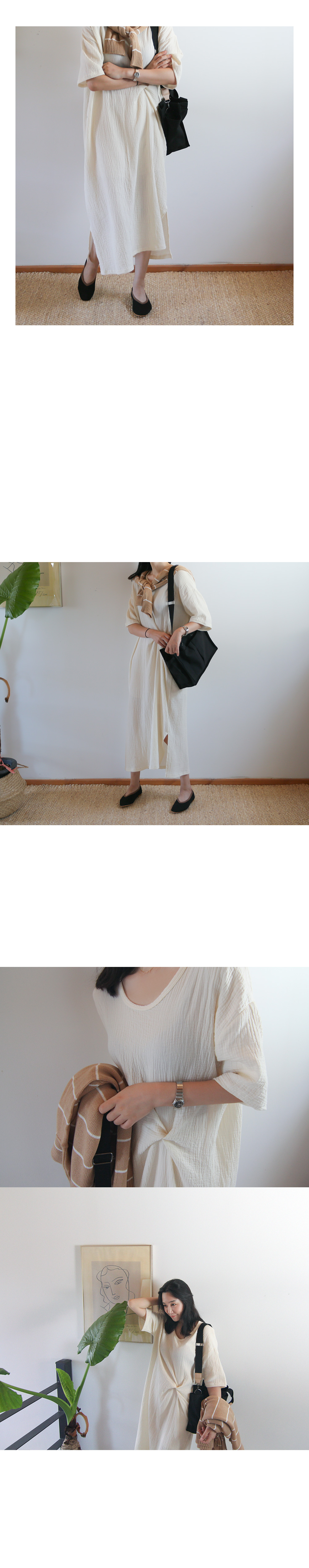 톡톡한 코튼 소재에 살짝 결이 있는 원단으로 흔하지않고 편하게 입기 좋으면서 스타일까지 신경쓴 원피스에요