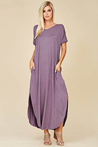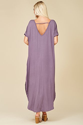 Short Sleeve with Twisted Band at Hem, V-neckline, Open Back Cutout, Maxi Length with High Slit Curved Hemline, Loose Fit