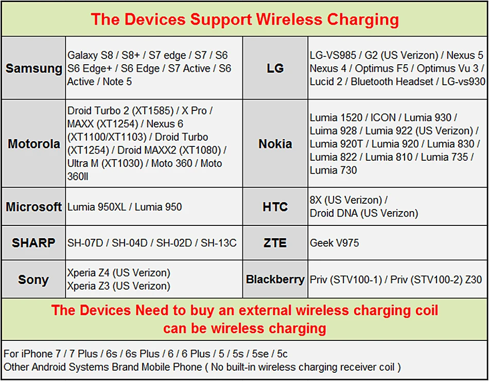 The QI Wireless charging device is divided into two parts. One is the QI wireless charging transmitter, one is the QI wireless charging receiver. They can't be separated from each other. If your phone has a built-in QI wireless charging receiver, you just need to buy a QI wireless charging transmitter. If your phone has no built-in QI wireless charging receiver, then you also need to buy an external QI wireless charging receiver, so that your mobile phone can achieve QI wireless charging.