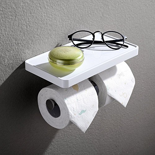 - Modern wall mounted toilet paper holder with storage rack;New Concept double tissue roll dispenser with utility shelf