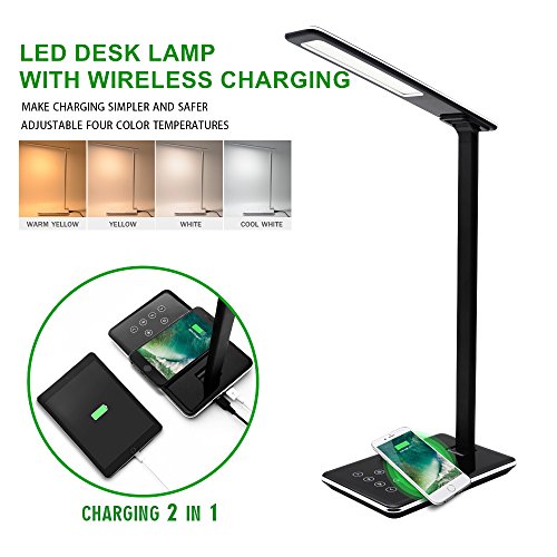 LuTecYa LED Wireless charging desk lamp is an intelligent product.Simply designed,it gives out great lights with different color temperature. Also,it has built-in wireless charger which is compatible with any Qi-standard phones and devices.Besides, it is integrated with USB output function which makes charging mush easier.Now enjoy a simple and free life with this multi-functional desk lamp!