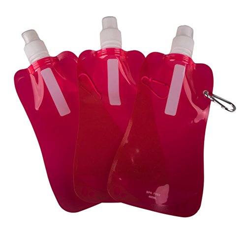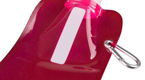 -. Feature : Whether you're hiking, biking, walking, or just relaxing, these collapsible pink water bottles are sure to keep you hydrated and refreshed. / Made from flexible 100% BPA free plastic, these water bottles hold up to 480ml of water or your favorite drink. / The included metal carabiner make attaching this water bottle to your bag, bike, or belt simple and easy. / Each water bottle measures 10.25" x 4.75" x 1.25" when empty and can be easily rolled up to easily fit into bags and backpacks. / Backed By Our 100% Satisfaction Guarantee (Details Below in Description)