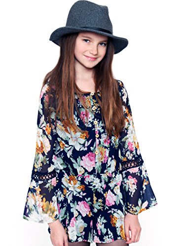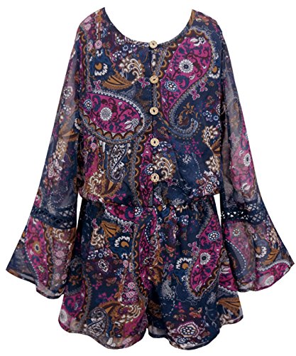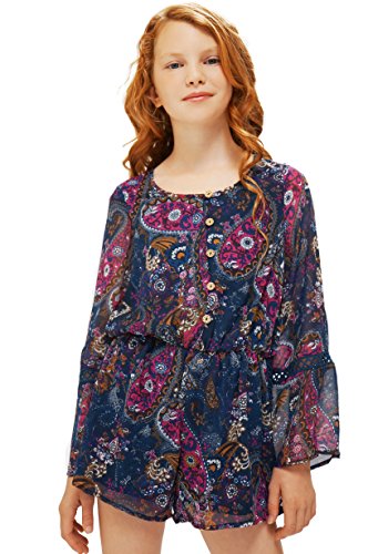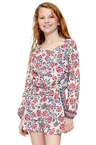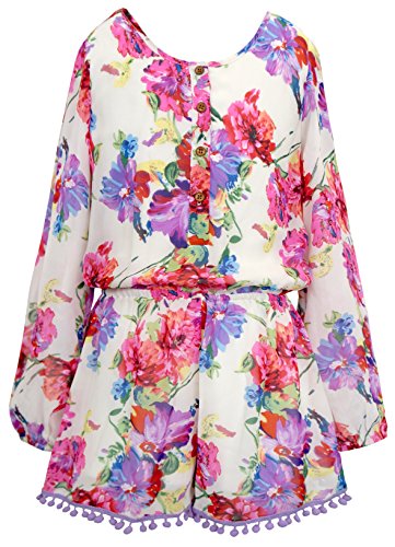 An outfit you'll be glad she chose to wear! This long sleeve romper by Truly Me features a gorgeous pink, green, and yellow floral pattern complimented with buttons, and a wrapped front. A soft chiffon and versatile style to go with any season! A perfect match with your daughter's lovely personality.Feature