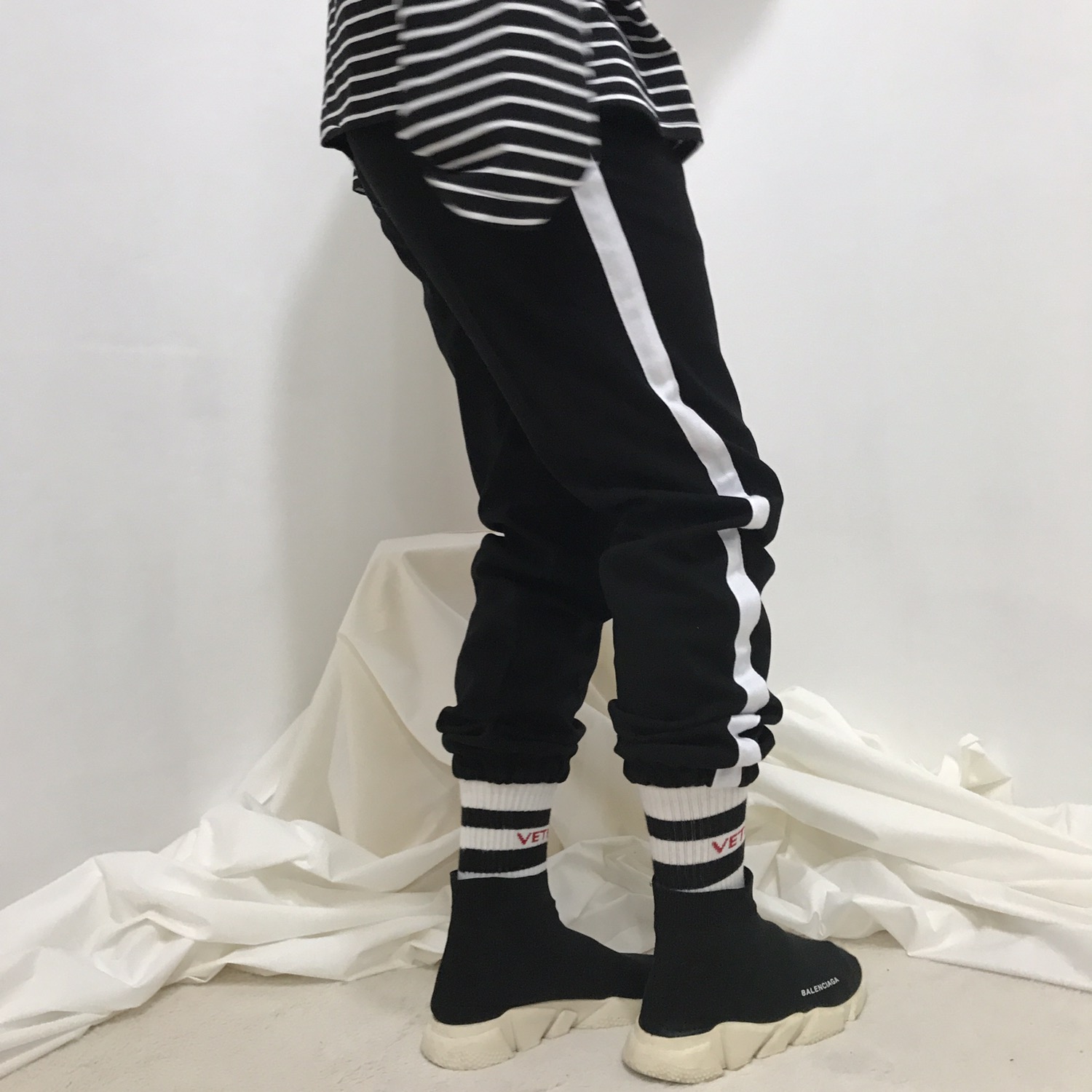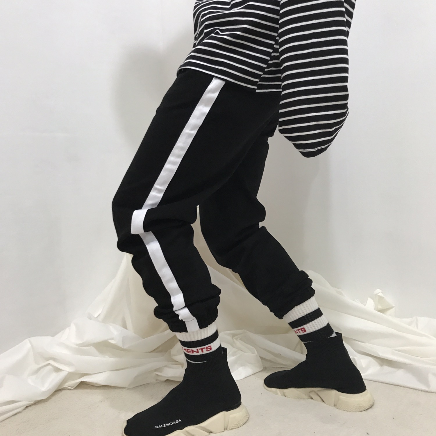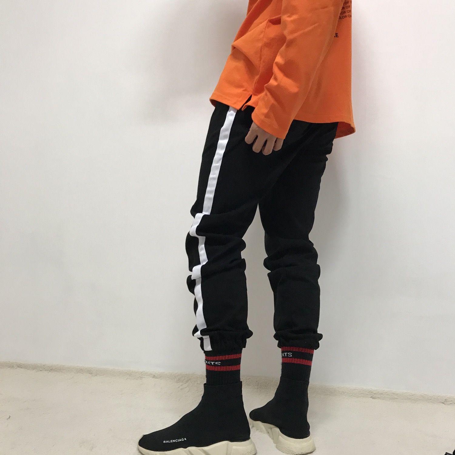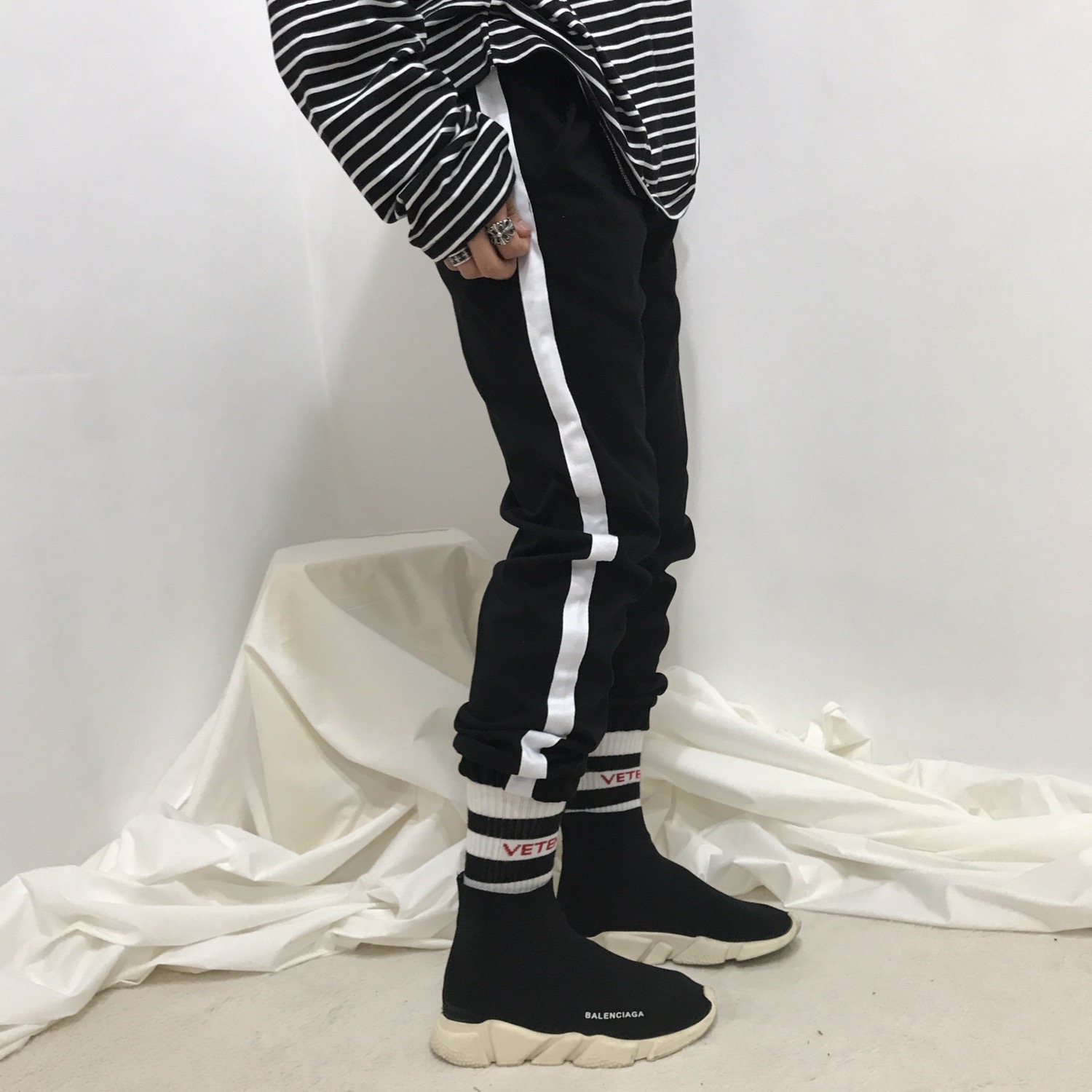 Side Line Taping Jogger Pants Black Track Training Bending Pants Street Daily Men's Fashion