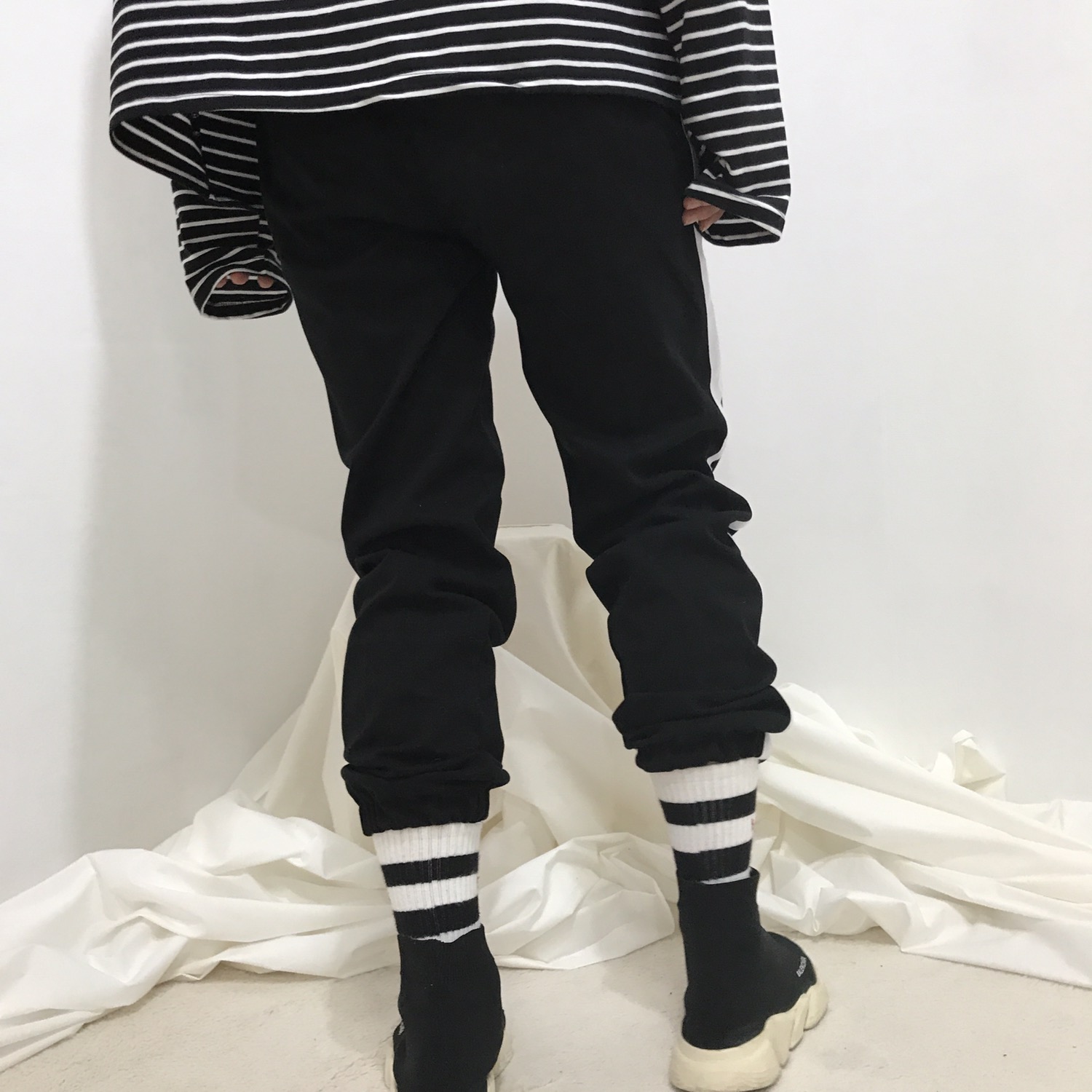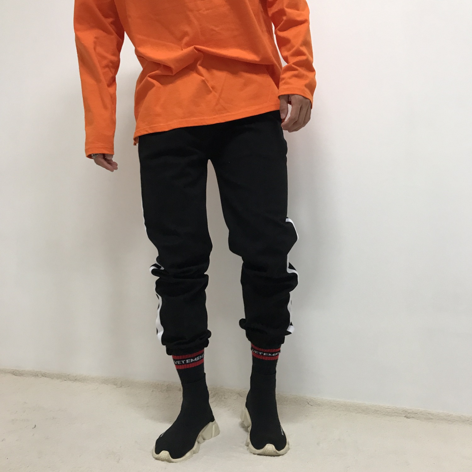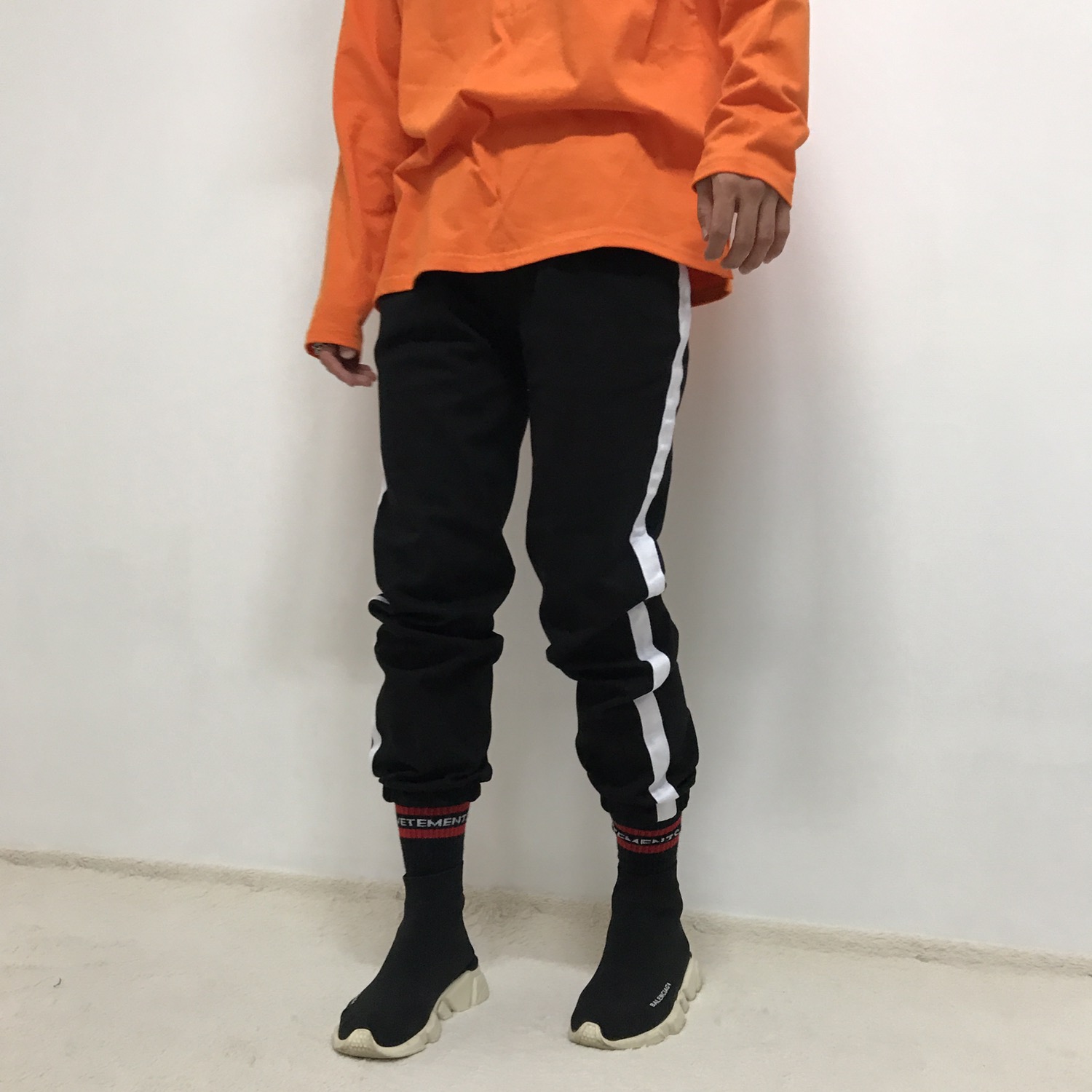 Side Line Taping Jogger Pants Black Track Training Bending Pants Street Daily Men's Fashion