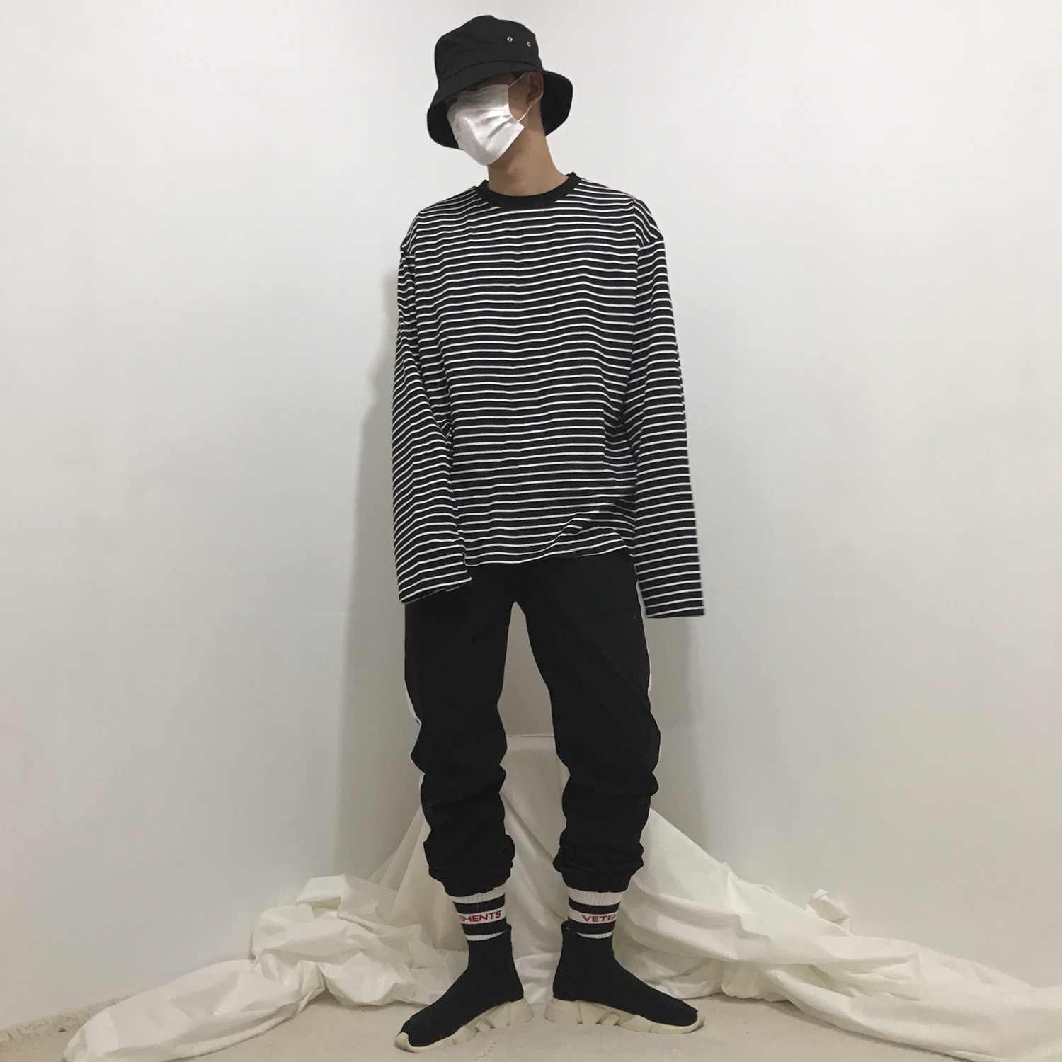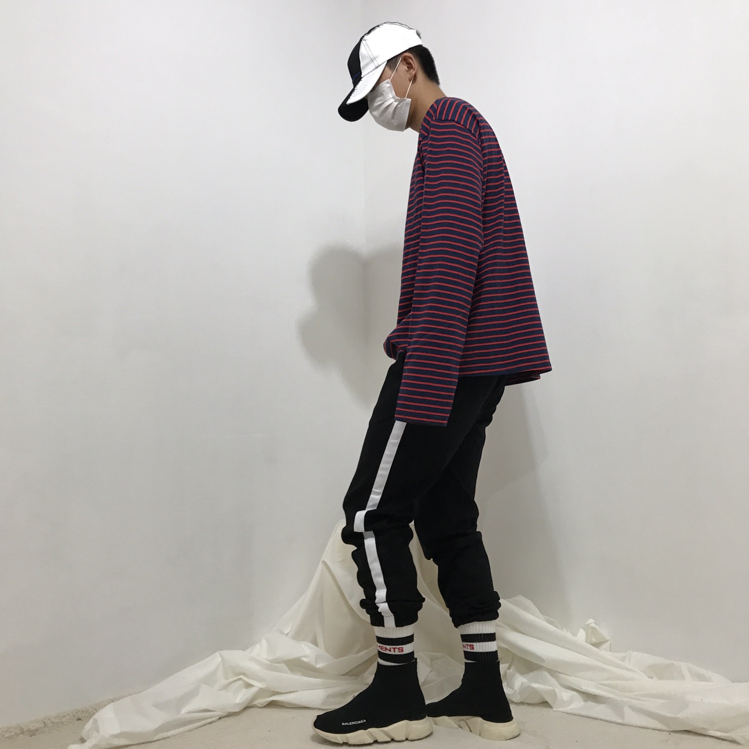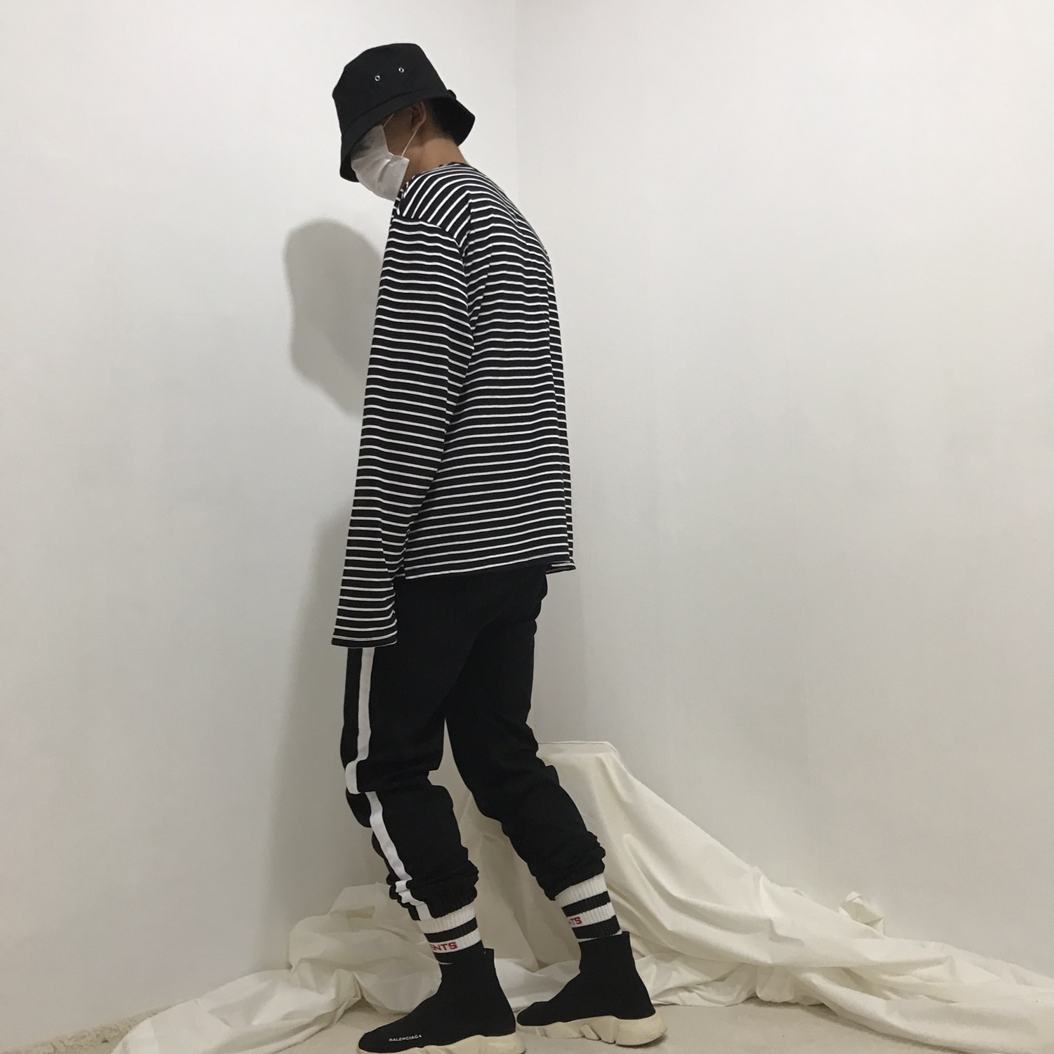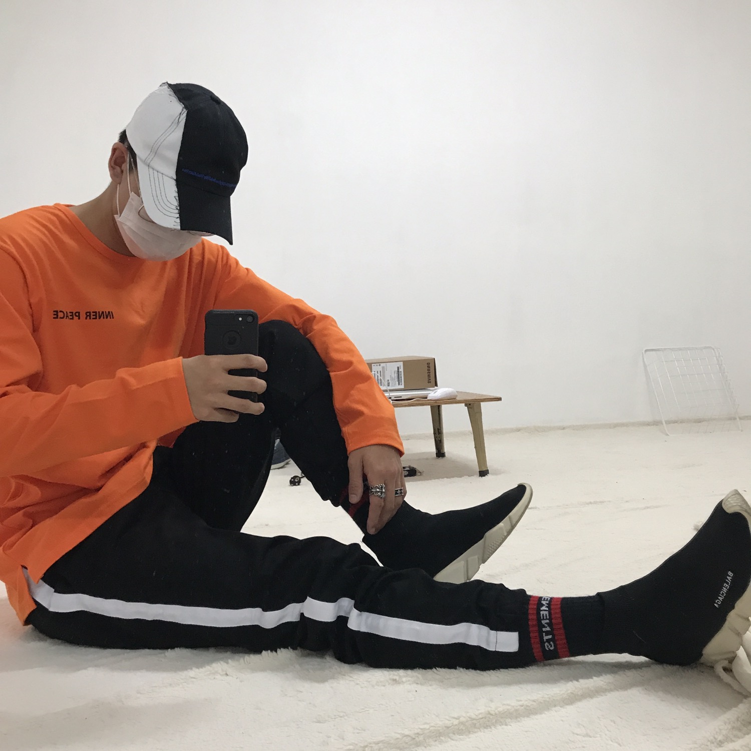 Side Line Taping Jogger Pants Black Track Training Bending Pants Street Daily Men's Fashion