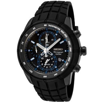 Seiko Men''s SNAD87 Chronograph Black Dial Black Rubber Alarm Watch