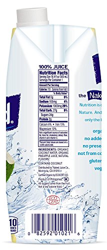 Naked Juice Coconut Water, Pineapple, USDA Organic, NON GMO Project Verified, 16.9 Ounce, 12 Pack