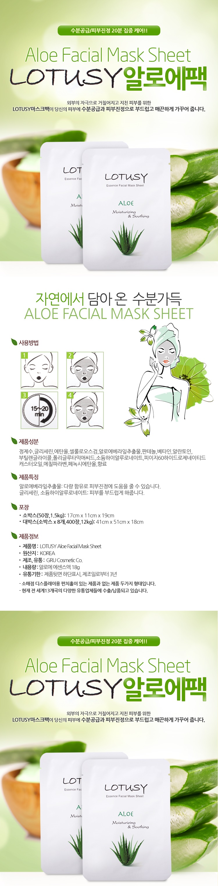 LOTUSY aloe moisturizing mask pack -50 sheets of