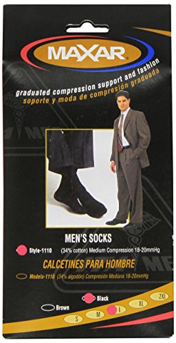MAXAR Men's Trouser Support Socks (20-22 mmHg) Black, Large, 2 Count
