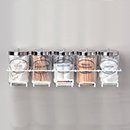 -. Brand : MOORE Medical -. Color : Clear -. Feature : Holds 5 glass or plastic sundry jars / Can be wall mounted (hardware included) or used on a counter top / Vinyl coated steel / Measures 23.4" Long x 4.7" Wide x 4.1" High -. IsAutographed : 0 -. IsMemorabilia : 0 -. Label : Moore Medical -. Manufacturer : Moore Medical -. MPN : 77363 -. PartNumber : 77363 -. ProductGroup : BISS -. ProductTypeName : PROFESSIONAL_HEALTHCARE -. Publisher : Moore Medical -. Studio : Moore Medical -. Title : Moore Medical Sundry Jar Rack - Each