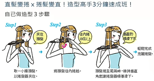 用法:插上电源调到自己想要的温度,可以拉直头发,刘海,卷发哦