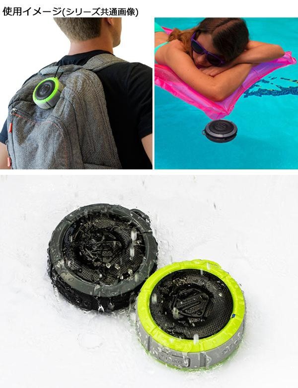 耐衝撃性に優れたシリコン製のボディです。充電時間約3時間で最長7時間の再生が可能!水面に浮く構造で、プールや海などでご使用頂けます。持ち運びに便利なカラビナ付き。 |
