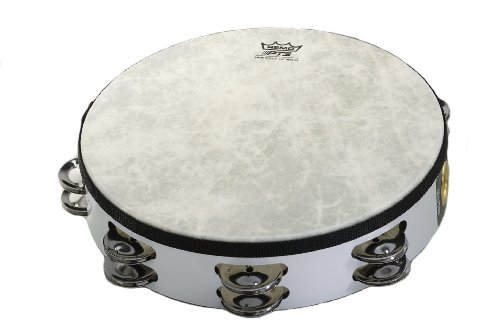 Remo Tambourine, Pretuned, 10 Diameter, 8 Pairs Jingles x 2 Rows, QUADURA White