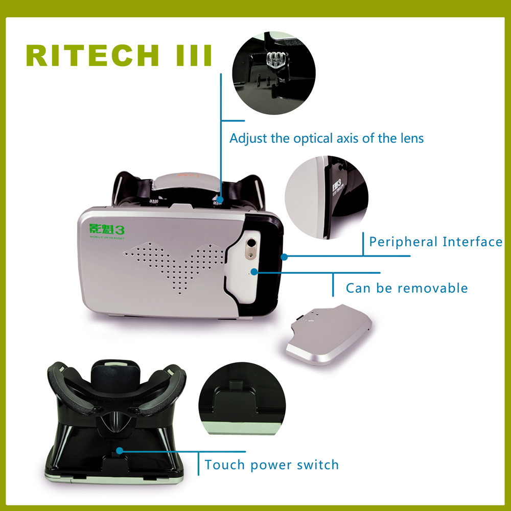 RITECH III VR Virtual Reality 3D Glasses Headset Oculus Rift Head Mount Google Cardboard for 3.5''-6'' Phone + Bluetooth Remote Control Comes with Original Box