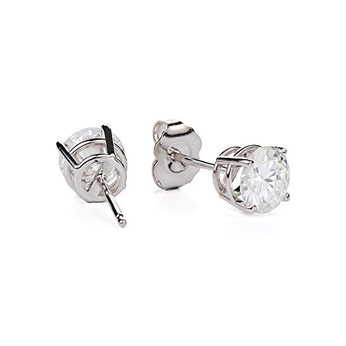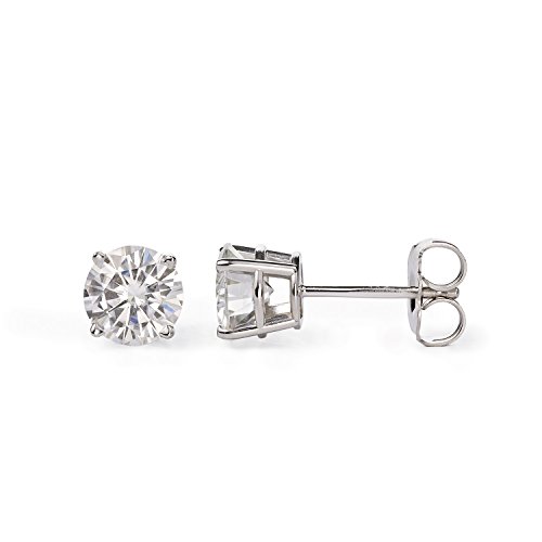 -. Feature : These charming Forever OneTM stud earrings showcase 6.0mm round brilliant cut moissanite gemstones. / Beautifully crafted in rhodium plated 14K white gold and secured in a four prong setting. / Each 6.0mm moissanite gemstone has a Diamond Equivalent Weight (DEW) of 0.80ct (Actual Weight 0.68ct). The pair of earrings has a total Diamond Equivalent Weight (DEW) of 1.60cttw (Actual Weight 1.36cttw). / Charles & Colvard Forever OneTM G-H-I is a near-colorless gemstone with a slight icy hue. Cut from our high-quality material and possessing the same optical properties as our D-E-F gemstone, G-H-I has a cool-toned body color that gives it a unique look and differentiates it from other gemstones on the market today. Color grades are based on the Gemological Institute of America's diamond color grading scale. / Moissanite created by Charles & Colvard is among the hardest minerals on the planet, more durable than sapphire, ruby, or emerald and has more brilliance than a diamond. It scores 9.25 on the Mohs scale for hardness.