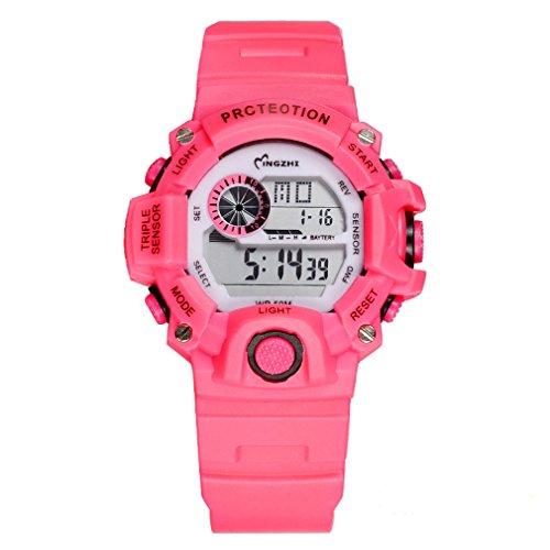 The trumpet is suitable for children of 3-12 years of age, small dial diameter 40MM, band 22MM, depending on the shape and personal preferences to choose.. DURABLE:High hardness glass, not easy to wear, key scratch resistant watch face, stainless steel water proof case cover and resin watch band make it super durable, resin band strap provide wear resistant and comfortable wearing experience. WATERPROOF FOR DAILY USE: 98 FT waterproof (30 M) - 3ATM. Perfect for all kind of business, casual, indoor and outdoor activities and daily use.. NOTE: Please DO NOT pull out the button under the water. Too much water contact or usage in extrem Hot or Cold temperature will damage the watch band and shorter watch life.Feature