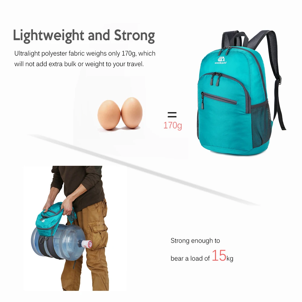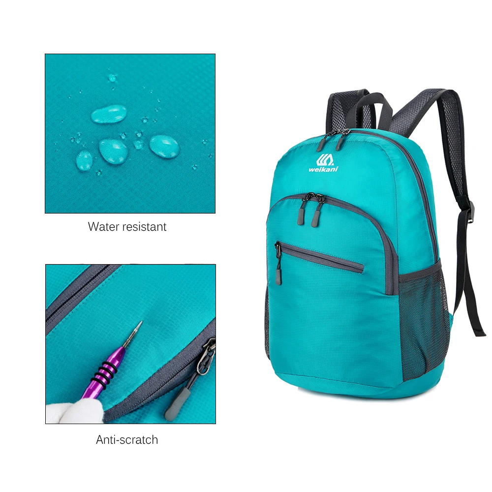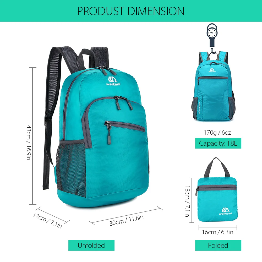 This backpack has a large capacity of 18L to hold almost lots of stuffs you need in the trip. It can be folded into a compact size to fit anywhere for convenient portability, perfect for outdoor camping, hiking, cycling, traveling.