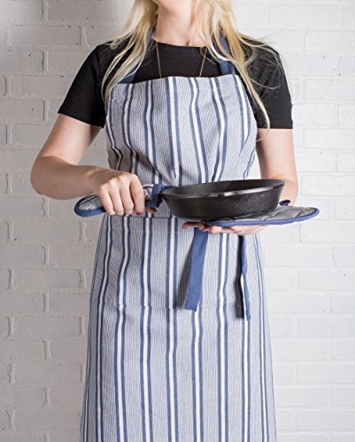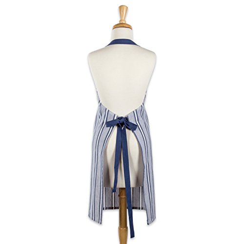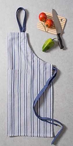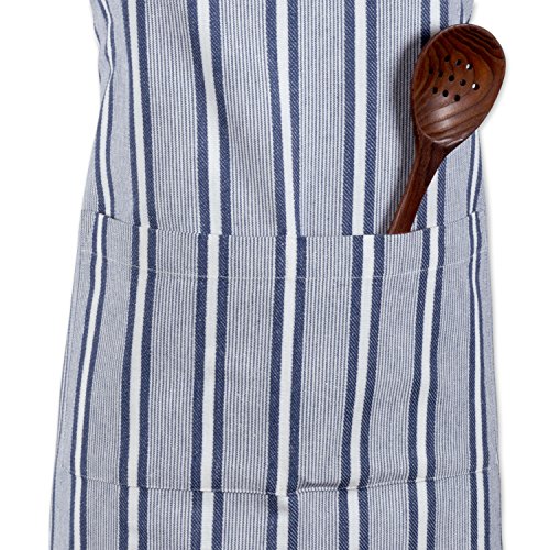 DII Cotton Adjustable Stripe Chef Bib Apron with Pockets and Extra Long Ties, 32 x 28", Professional Men and Women Restaurant Kitchen Apron for Cooking, Baking, BBQ-French Blue