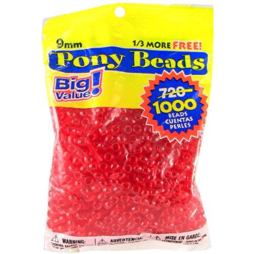Darice 9mm Value Pack Pony Bead, Transparent Red