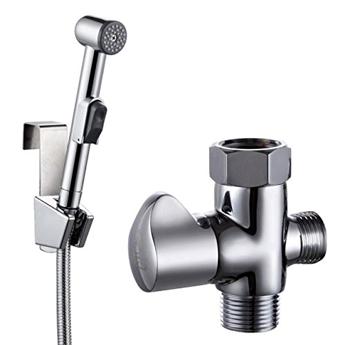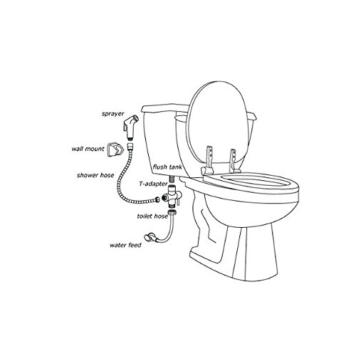 Interior Solutions Toilet Bidet Sprayer with T-adapter and Shower Hose and Bracket Holder Bathroom Toilet Attachment with Cloth Diaper Spray Wand Shattaf Polished Chrome SS6004+D2011