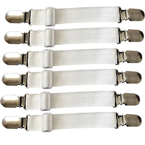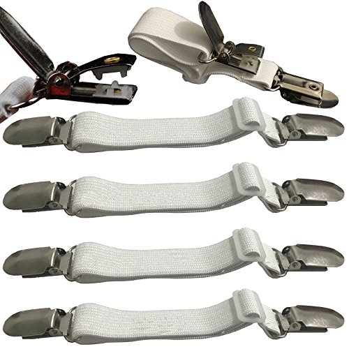 - ----Wider elastic provides stable and stronger grip for heavy duty purpose; Easy to put on and keeps corners in place, Life savers! Perfect Fitted Bed Sheet and mattress Cover Fastening System; fitted sheet holder,bed sheet holder straps,bed sheet corner clips grippers straps,adjustable elastic sheet straps grippers,sheet fasteners;Sheet suspenders grippers