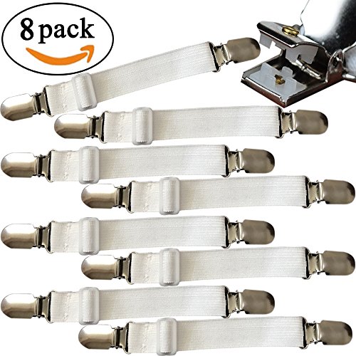 - -----100% QUALITY GUARANTEED! 8pcs Bed Sheet Clips Straps Suspenders White Adjustable Corner Holder Elastic Fasteners Mattress Pad Cover Fitted Sheet Grippers Heavy Duty