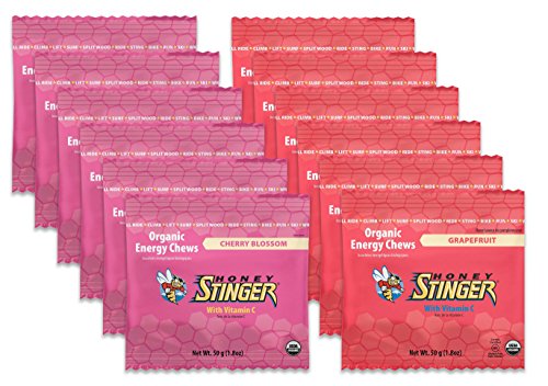 -. Binding : Health and Beauty -. Brand : Honey Stinger -. EAN : 0798928368844 -. Feature : Certified organic / Certified gluten free / Fortified with 100% RDA vitamin C / Sweetened with organic honey and tapioca syrup / Providing a natural and sustainable source of energy -. Label : Honey Stinger -. LegalDisclaimer : Actual product packaging and materials may contain more and different information than what is shown on our website. We recommend that you do not rely solely on the information presented and that you always read labels, warnings, and directions before using or consuming a product. Please see our full disclaimer below. -. Manufacturer : Honey Stinger -. PackageQuantity : 1 -. ProductGroup : Health and Beauty -. ProductTypeName : HEALTH_PERSONAL_CARE -. Publisher : Honey Stinger -. Size : 6 of both (12 Bags Total) -. Studio : Honey Stinger -. Title : Honey Stinger Organic Energy Chews-Cherry/Grapefruit-6 of Both (12 Bags Total) -. UPC : 798928368844