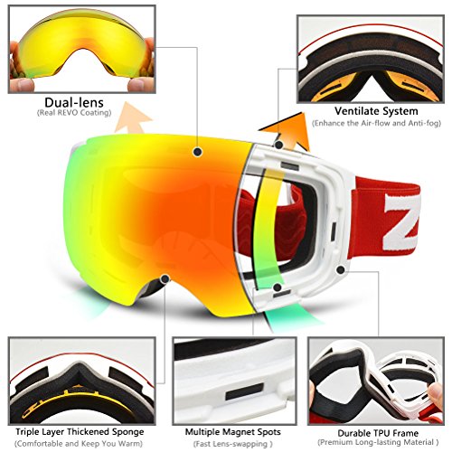 -. Title : Snow Goggles, ZIONOR Lagopus X4 Ski Snowboard Goggles 100% UV400 Protection Anti-fog Magnet Lens-changing Dual-layer PC Lens Durable TPU Frame Full Venting for Adult and Teenager
